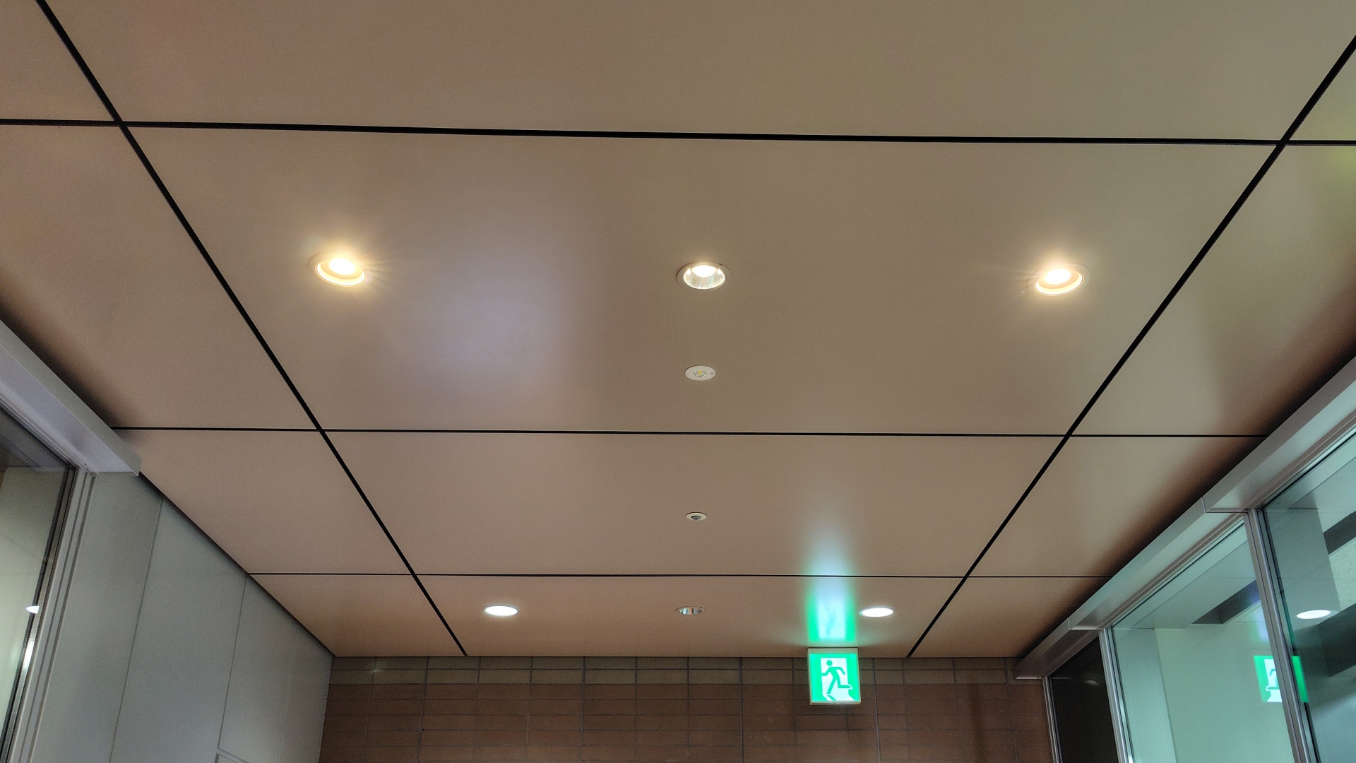 ダウンライトやスピーカーの開口は微調整ができませんが、感知器は多少動かせるため、全体のバランスを見て位置を決める必要があります。